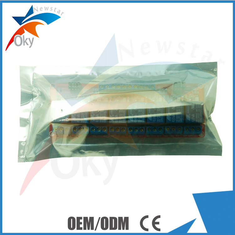 Description | * SMD optocoupler isolation, strong driving ability, stable performance; trigger current 5mA * Each channel module can be set high or low triggered by jumper * Fault-tolerant design, even if the control line is broken, the relay will not operate * Power indicator (green), 8 relay state indicator (red) * Interface design user-friendly, all interfaces are available through the wiring terminal direct connection leads, very convenient * The module has 4 mounting bolts holes, hole 3.1mm, spacing 136mm*44.5mm